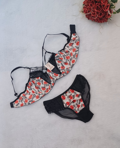 ست سوتین شورت طرح لب چهار هارنسه