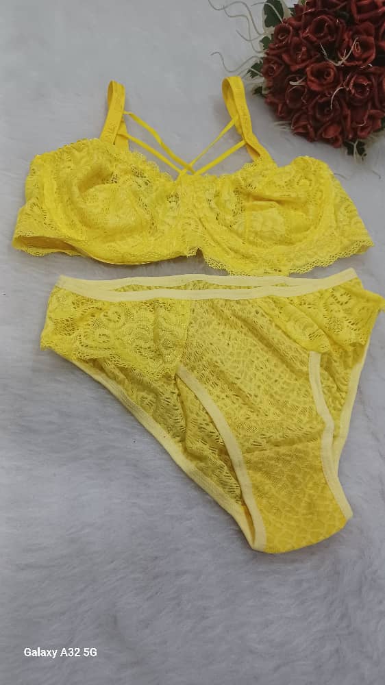 ست تور و گیپور چهار هارنسه زیره کار فنر کار شده زیره کار نخ کار شده بسیار تنخور شیکی داره سایز بندی مثلا سایزتون ۷۵ هست باید سایز ۸۰ بردارید چون مدل کارا فانتزی هست بسیار تنخور شیک